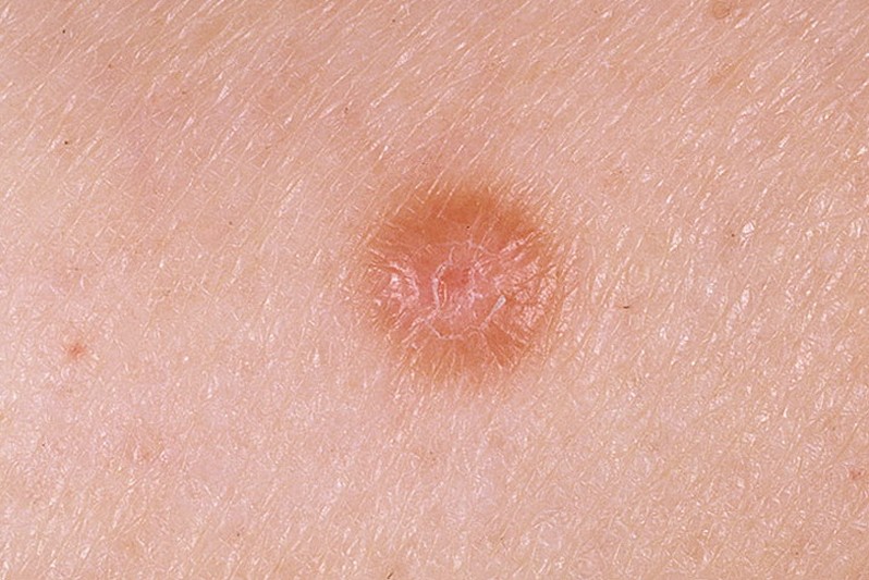 • გამონაყარის შეფერილობა უმეტეს შემთხვევაში კანის ფერისაა, შესაძლოა იყოს მოვარდისფრო ან მოყავისფრო (ჰემოსიდერინის ჩალაგების გამო). ზედაპირი სწორია, პრიალა ან აქერცვლადი.
