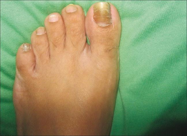 • ფრჩხილს აქვს მოყვითალო შეფერილობა.