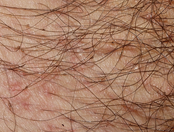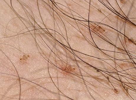 • პარაზიტების კვერცხები შეიმჩნევა თმის ფოლიკულებთან ახლოს.