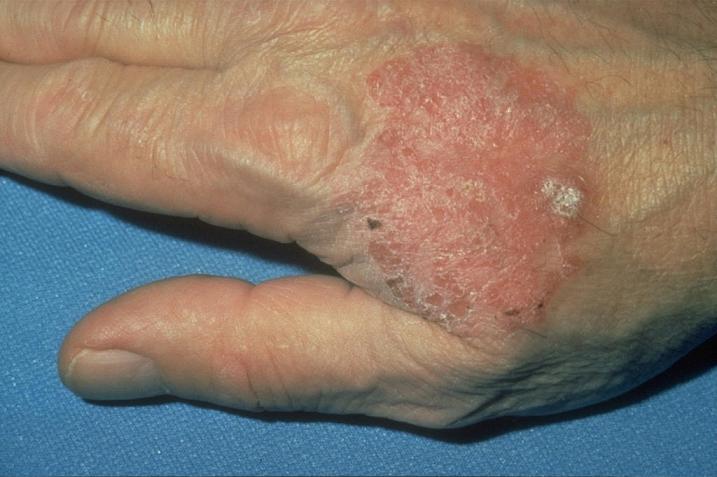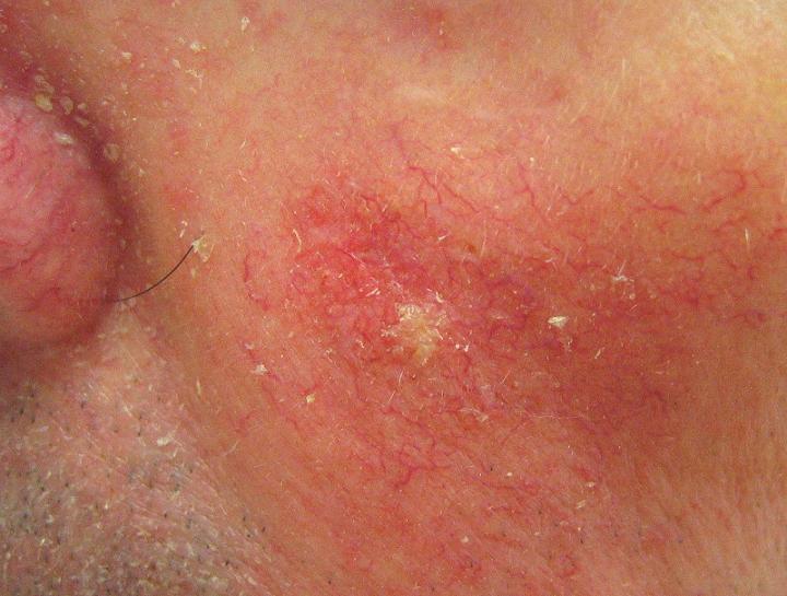 • ტიპიური გამონაყარი წარმოდგენილია მოვარდისფრო ან ღია წითელი შეფერილობის პაპულების სახით, რომლის ზედაპირი დაფარულია მოთეთრო– მოყვითალო ქერცლით.