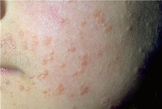 • ტიპური ლოკალიზაციაა სახე, მტევნები და ტერფები.